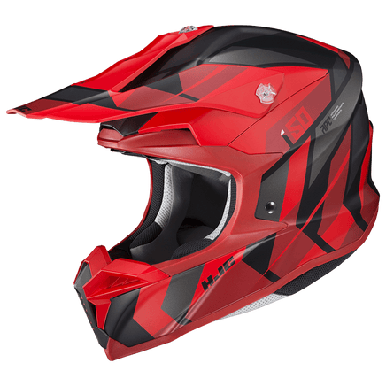 HJC's new off-road helmet is designed to create ease and comfort for the rider in an aggressive and attractive design. A large, repositioned eye-port optimizes the view for downward visibility. Dual-position goggle band fitment adjusts for the rider's comfort and preference. The extended visor blocks sunlight and protects the rider from debris and is flexible to allow the material to bend instead of break. The tool-less, changeable mouth vent allows for easy cleaning. "ACS" Advanced Channeling Ventilation system allows full front to back airflow to flush heat and humidity up and out, while the SuperCool(R) Interior keeps the rider cool and fresh with moisture-wicking and antibacterial fabric that is removable and washable. The i50 features SLID (Sliding Layer Impact Distribution), HJC's impact distribution technology.