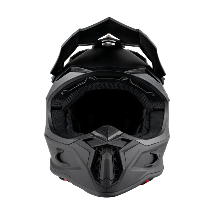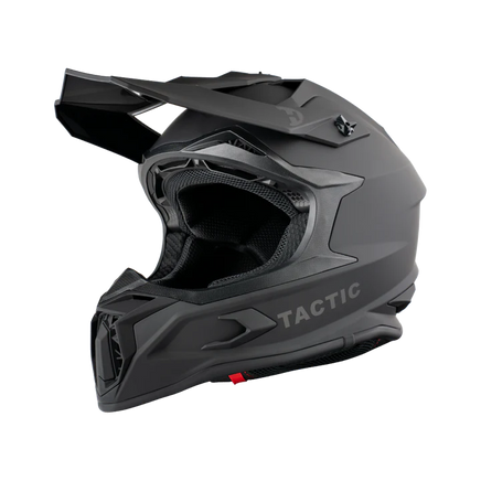 Our D.O.T. And ECE Daytona Tactic Motocross Helmet In A Soft Touch Dull Black, Meets And Exceeds D.O.T. FMVSS 218 And ECE 22R06 Standards. Helmet Comes Goggle-Ready And Features A Removable Aerodynamic Visor. Also Has A Quick Release Lock Retention System; One Finger Release Lever For Easy Detachment, Passive Chin And Forehead Ventilation And A Removable, Hand Washable Interior (Moisture Wicking Fabric). Bluetooth Compatible. Cloth Draw String Bag Included.